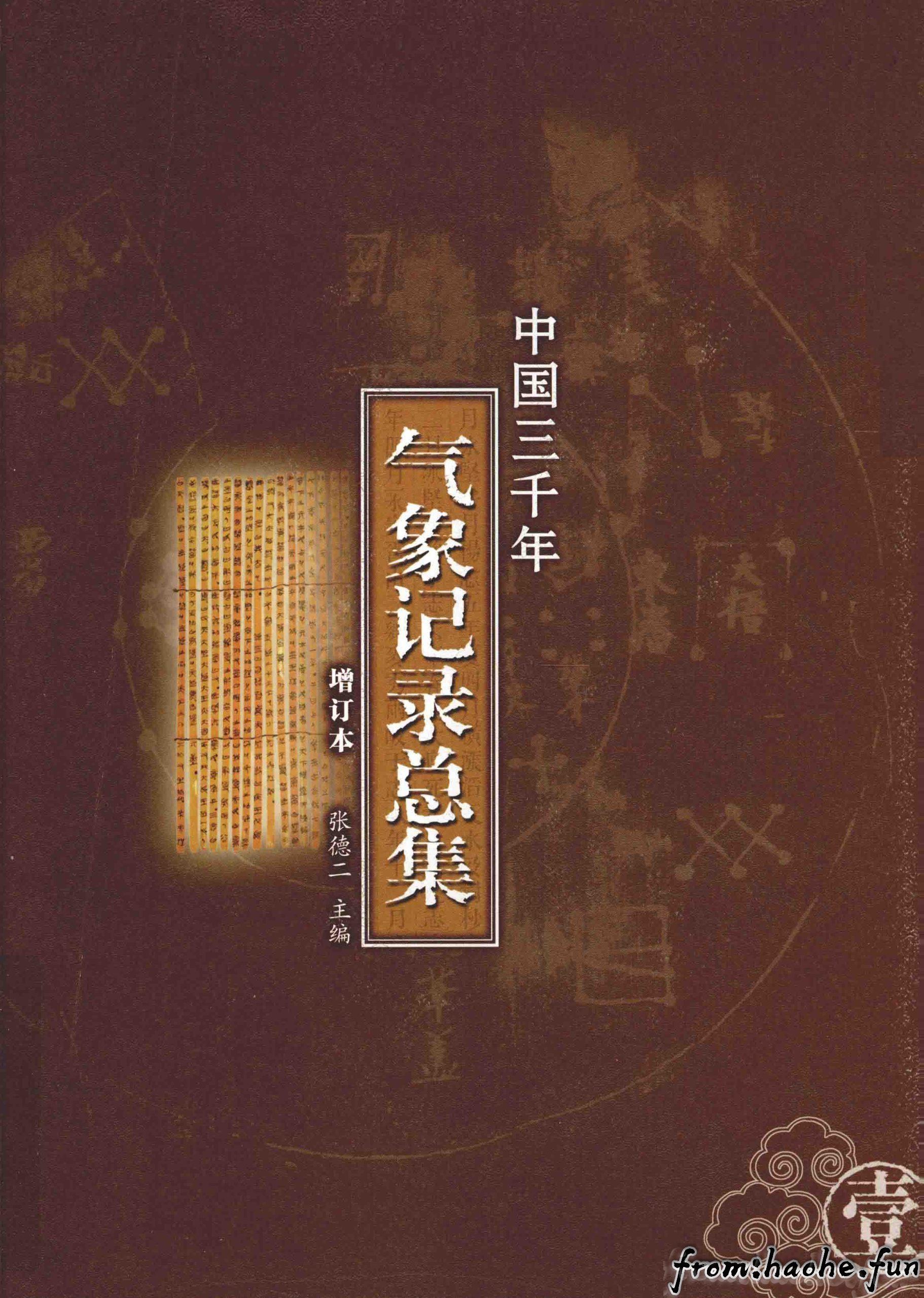 《中国三千年气象记录总集》由张德二、蒋光美主持编纂,该书历时十年整理完成,系统辑录中国自殷商甲骨文至清末(1911年)各类气象记录,查录古籍8228种,涵盖地方志、正史、碑文等文献类型。